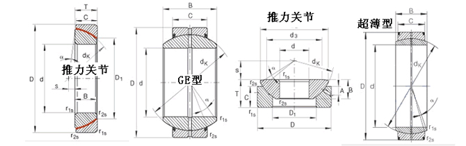 關(guān)節(jié)軸承是一種特殊結(jié)構(gòu)的滑動軸承。它的結(jié)構(gòu)比滾動軸承簡單,其主要是由一個有外球面的內(nèi)圈和一個有內(nèi)球面的外圈組成,能承受較大的負荷,根據(jù)其不同的類型和結(jié)構(gòu),可以承受徑向負荷、軸向負荷或徑向、軸向同時存在的聯(lián)合負荷。關(guān)節(jié)軸承一般用于速度較低的擺動運動(即角運動),由于滑動表面為球面形,亦可在一定角度范圍內(nèi)作傾斜運動(即調(diào)心運動),在支承軸與軸殼孔不同心度較大時,仍能正常工作。