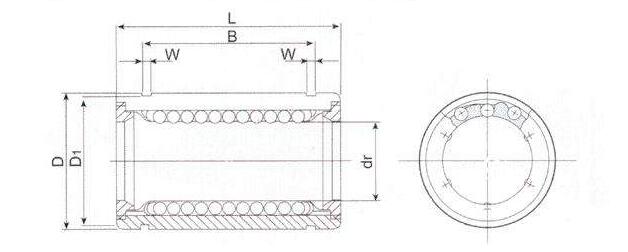 一種以低成本生產(chǎn)的直線運(yùn)動(dòng)系統(tǒng),用于無限行程與圓柱軸配合使用。由于承載球與軸呈點(diǎn)接觸,故使用載荷小。鋼球以極小的摩擦阻力旋轉(zhuǎn),從而能獲得高精度的平穩(wěn)運(yùn)動(dòng)。