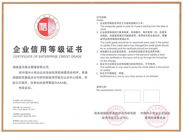 中國(guó)物業(yè)服務(wù)企業(yè)壹級(jí)資質(zhì)證書