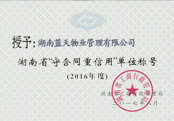 2016年度湖南省“守合同重信用”單位稱號(hào)