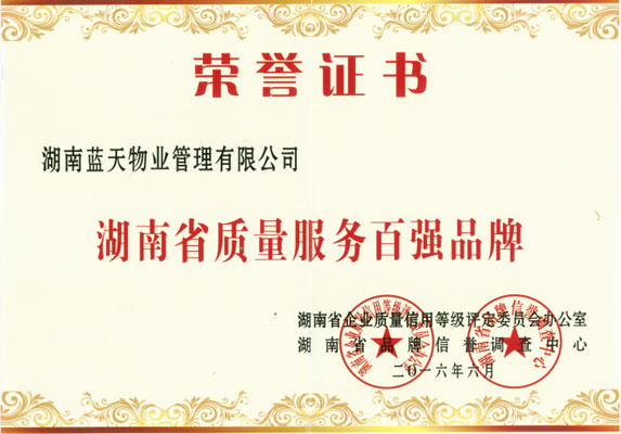 湖南省質(zhì)量服務(wù)百?gòu)?qiáng)品牌