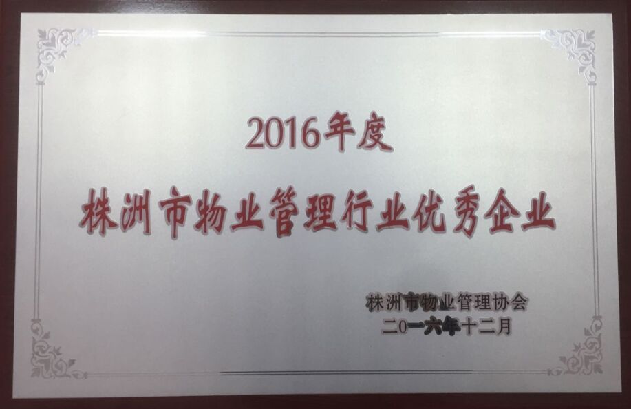 2016年度株洲市物業(yè)管理行業(yè)優(yōu)秀企業(yè)