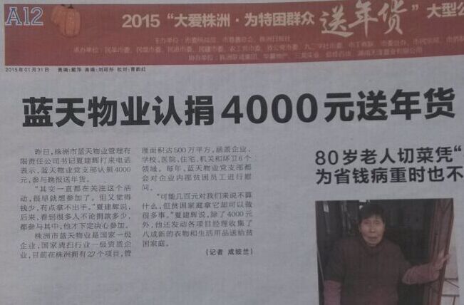 藍(lán)天物業(yè)認(rèn)捐4000元愛(ài)心送年貨