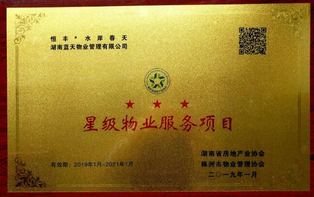 2019年1月18日,株洲市物業(yè)管理協(xié)會(huì)2018年年會(huì)在株洲市環(huán)洲歌劇院舉行,會(huì)議上宣讀表彰了株洲市2018年度優(yōu)秀企業(yè)、星級(jí)項(xiàng)目名單,我公司被株洲市物業(yè)協(xié)會(huì)授予“2018年度優(yōu)秀企業(yè)”、恒豐.水岸春天被授予“株洲市2018年度三星級(jí)物業(yè)服務(wù)項(xiàng)目”、江東明同志被評(píng)為“2018年度湖南省物業(yè)管理先進(jìn)個(gè)人”等榮譽(yù)。