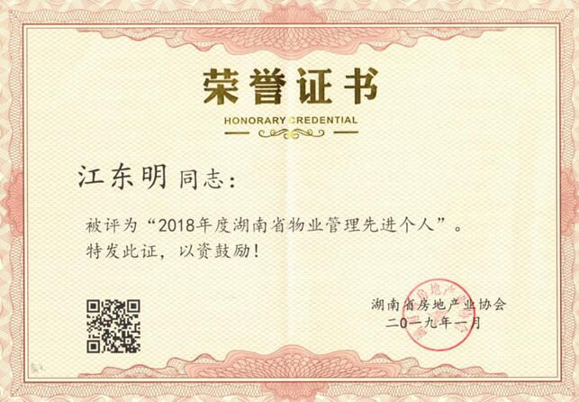 2018年度湖南省物業(yè)管理先進(jìn)個(gè)人—江東明同志