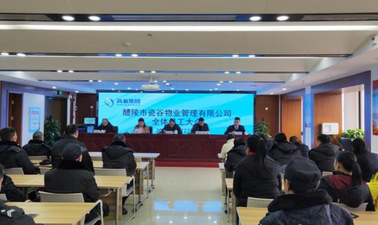 1月27日上午,醴陵市瓷谷物業(yè)管理有限公司全體員工大 會在高新集團二樓會議室召開,標志著瓷谷物業(yè)正式成立運營。高新集團總經(jīng)理謝智勇、副總經(jīng)理楊進、產(chǎn)投公司副總經(jīng)理湯潔、瓷谷物業(yè)執(zhí)行總經(jīng)理楊文化等負責(zé)人參加會議。